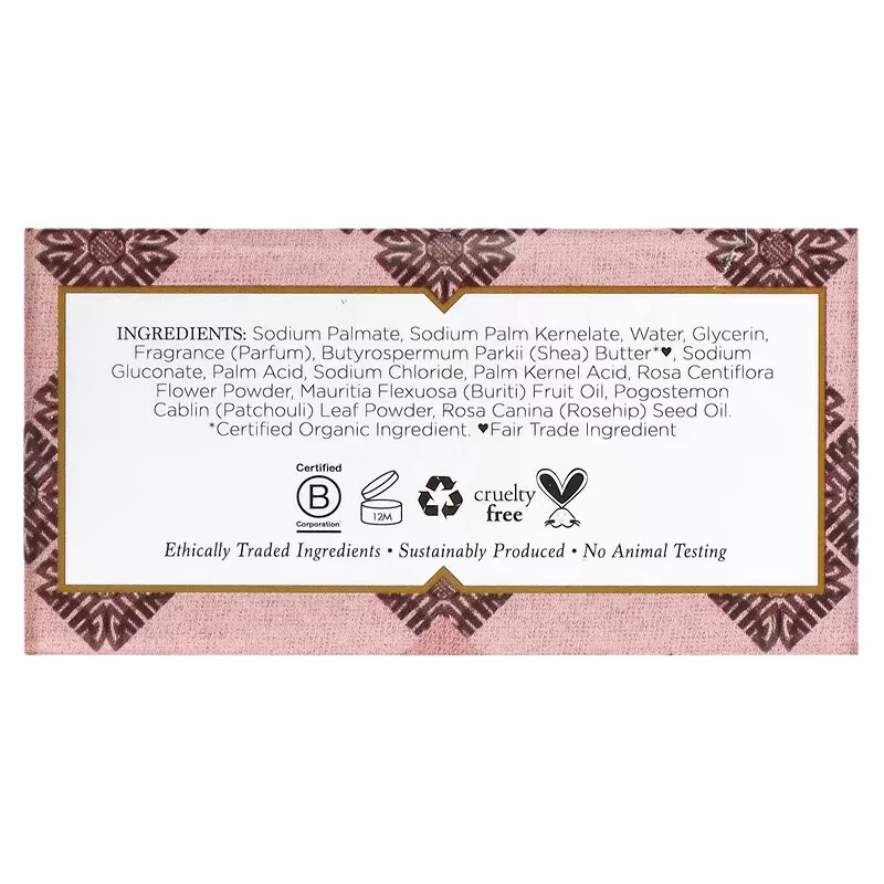 Deze luxueuze zeep is doordrenkt met de kruidige en aardse geur van patchouli en verrijkt met het voedende en hydraterende buriti-olie-extract. De beste biologische ingrediënten zorgen voor een milde en effectieve reiniging van je huid.